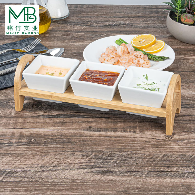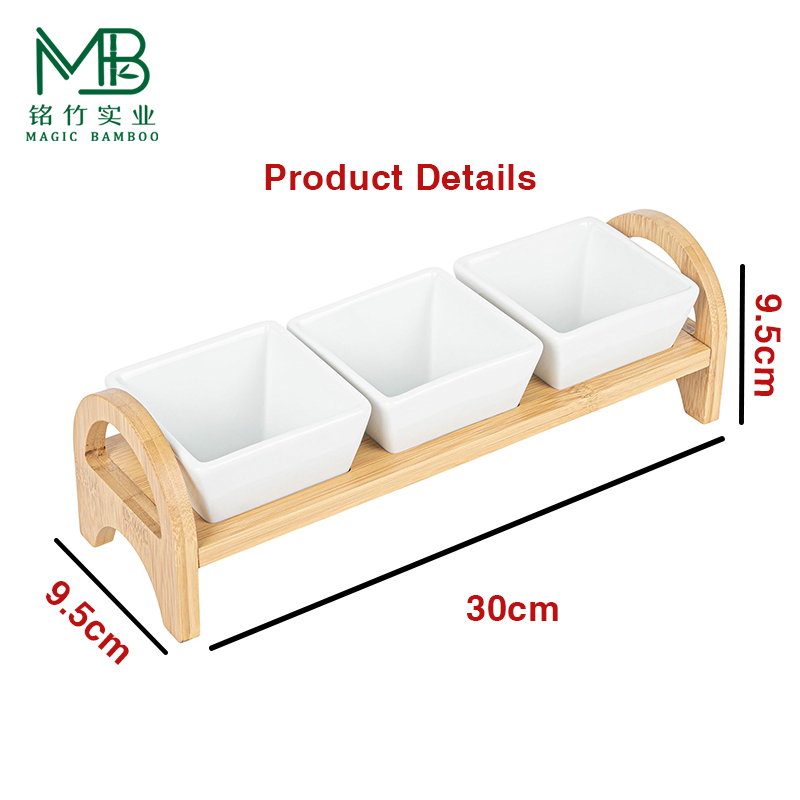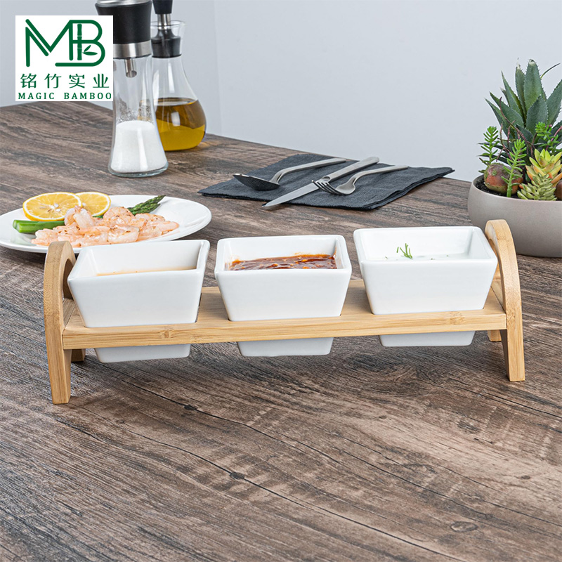 When entertaining guests, it's often necessary to serve multiple small dishes of sauces, appetizers, or side dishes. Our set simplifies the serving process. The integrated bamboo tray ensures all three components can be served at once, maintaining a professional and stable presentation, eliminating the need for multiple trips and reducing the risk of spills.